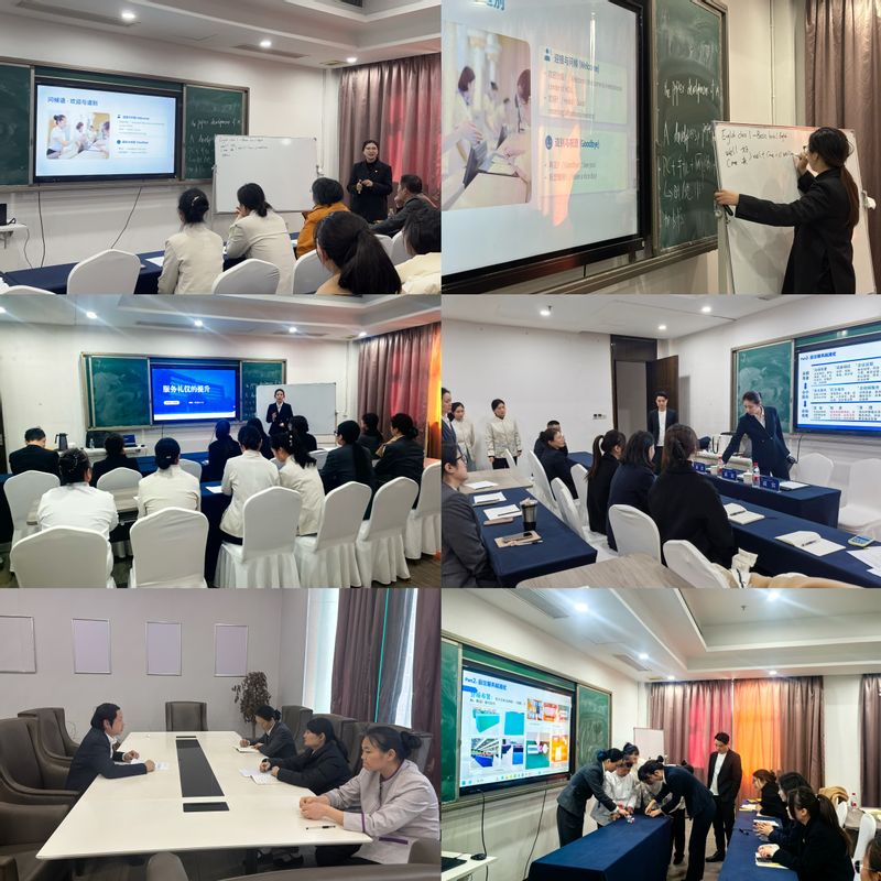 首期培训内容务实,围绕《酒店基础英语》《服务礼仪提升》《会务管理及服务》《突发事件处理预案》《文件与报表管理流程》等课程展开,采用“理论讲授+场景演练”相结合的模式,着力提升员工在外语应用、会务服务、应急处置与日常管理等方面的综合能力,为中心服务的标准化、专业化提供扎实支撑。