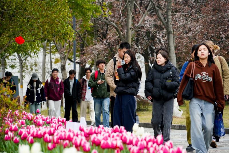 记者了解到,杭电去年一共种了3万株郁金香,数量超过了往年。这些花都是学生去年冬天亲手种的,所以大家都很关注,时不时地来探花、自发在社交媒体传播,希望更多的人来领略校园里的这处美好。